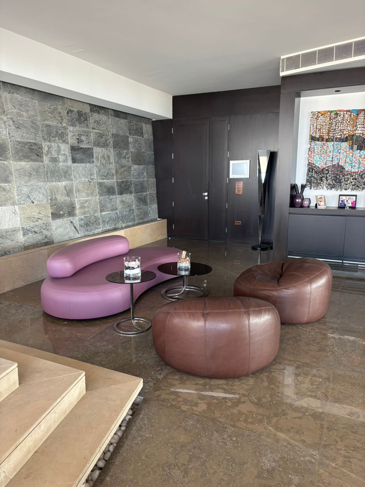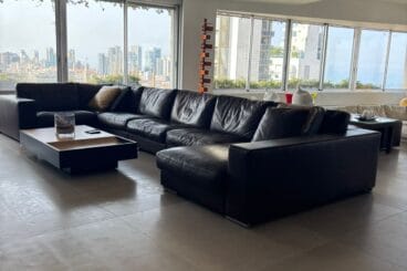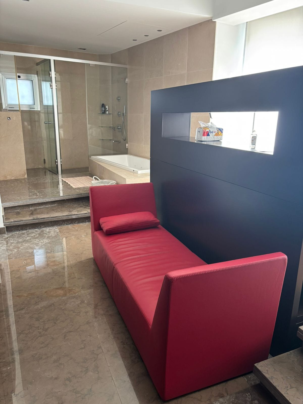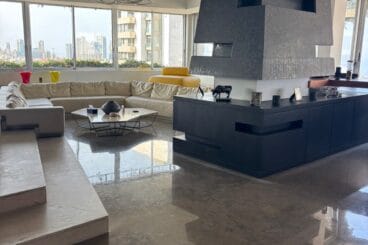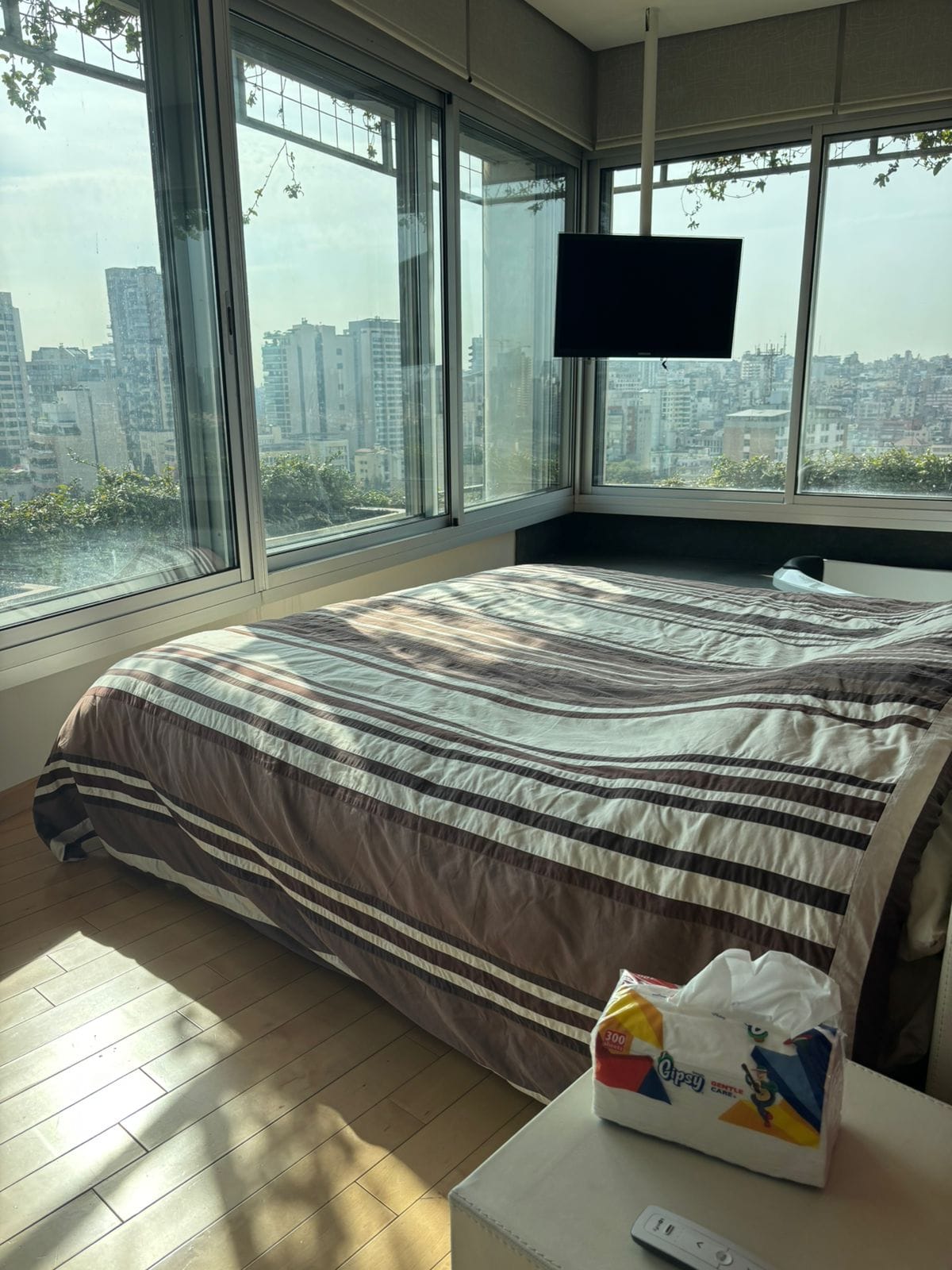 A 4 bedroom, 400 Sq. meter apartment on the 17th floor in Bliss Plaza 1 next to the Saudi Arabia Embassy. Lavishly furnished, consisting of 2 big living rooms, a big dining room, a terrace with a panoramic sea view, a fully equipped kitchen with a maid’s room, a family room, 2 master bedrooms, and 2 other rooms sharing one bathroom. 22 hours of electricity per day