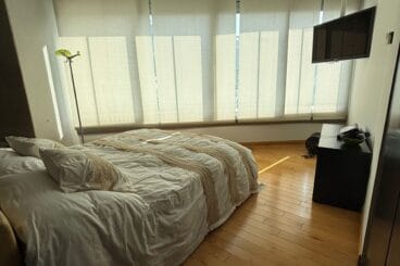 With floor to ceiling high windows and stunning views, you’ll forget your worries in this spacious and serene space. For cooking lovers, the kitchen is fully equipped and an enjoyable space.