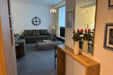 On the 1st floor of a state-of-the-art building (Quasar Tower) in Saifi. Lavishly furnished 2 bedroom apartment. Professional Gym with indoor and outdoor pools on the 14th floor with panoramic sea and city view.